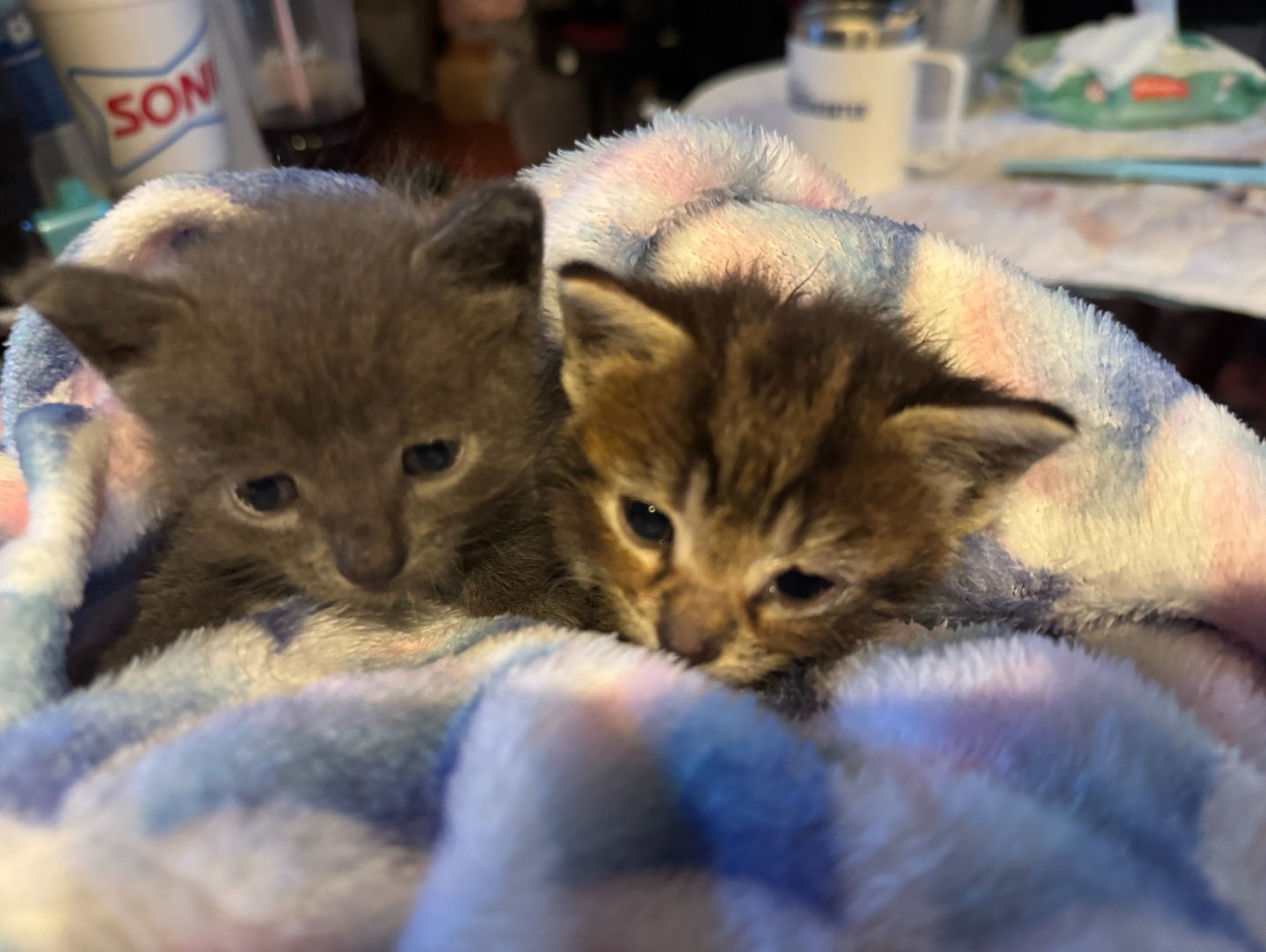 Chocolate Chunk and Jammy Dodger are possible pending names for the wee boys who came in yesterday, but we'll see what sticks.