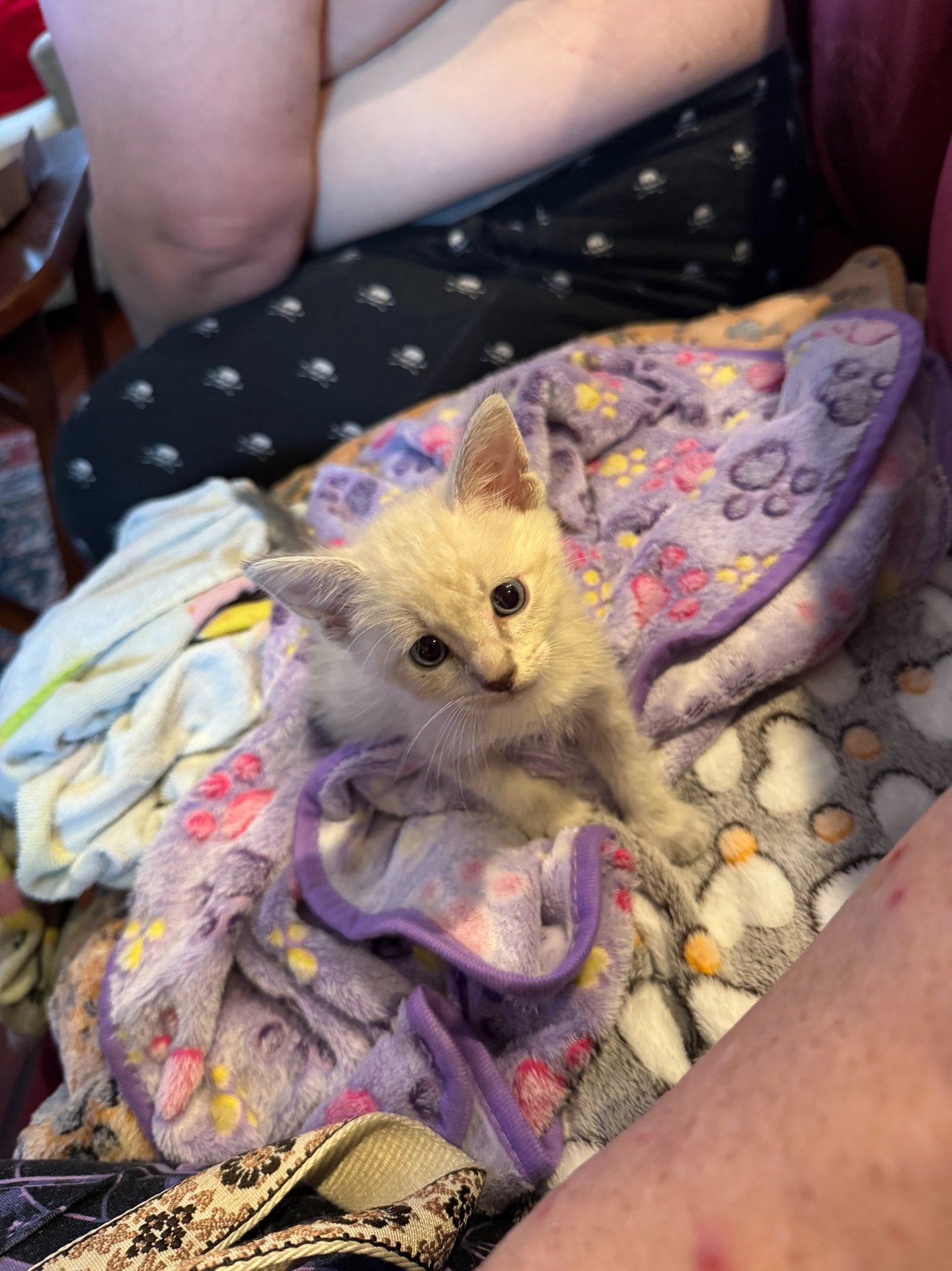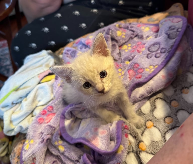 Sugar Cookie came to us from a "friend of the rescue" who found him on her property and kept him for his 2-week quarantine. He was born in early July and is about 5 weeks old as of August 10.